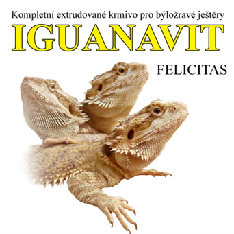Krmivo FELICITAS IGUANAVIT je kompletní plnohodnotné krmivo pro býložravé ještěry všech věkových kategorií. Je vyrobeno z prvotřídních surovin prověřené kvality. Použitá technologie řízené extruze výrazně zvyšuje stravitelnost krmiva a využití jednotlivých živin v organismu zvířat. V krmivu jsou obsaženy veškeré živiny (dusíkaté látky, uhlohydráty, tuky, minerální látky, vitamíny) v potřebném množství a optimálním poměru, proto při jeho zkrmování již není třeba dodávat zvířatům žádné další krmné doplňky. Krmivo podáváme zvířatům zpravidla zvlhčené, v dávkách odpovídajících dané kategorii. Krmnou dávku můžeme doplnit menším množstvím čerstvých krmiv (zelená píce, ovoce, zelenina). Krmivo má při dodržení podmínek skladováni (sucho a chladno) velmi dlouhou trvanlivost, kterou garantujeme minimálně 2 roky od data výroby.